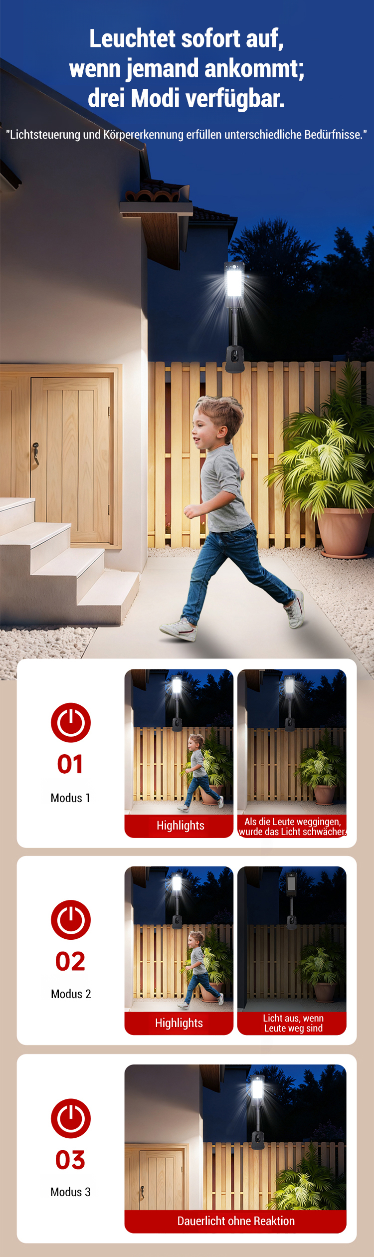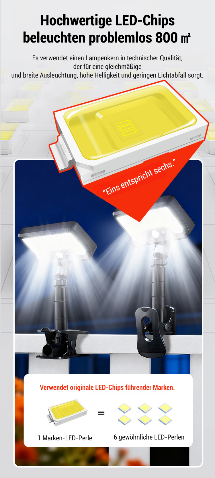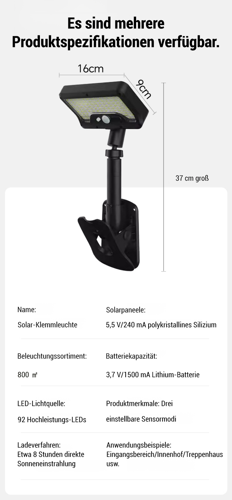 Intelligente Solar-Klemmlampe mit Bewegungsmelder