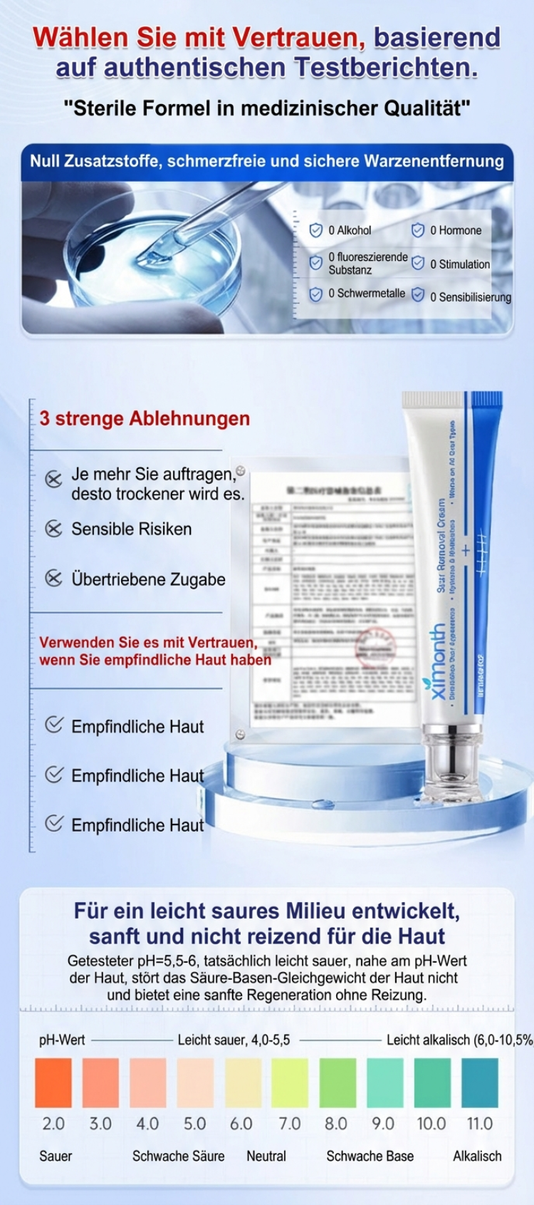 Schweizer medizinische Zertifizierung, geeignet für viele Warzenarten & alle Hauttypen, pflegt die Haut zusätzlich, sicher und kaum Rückfalle 😊