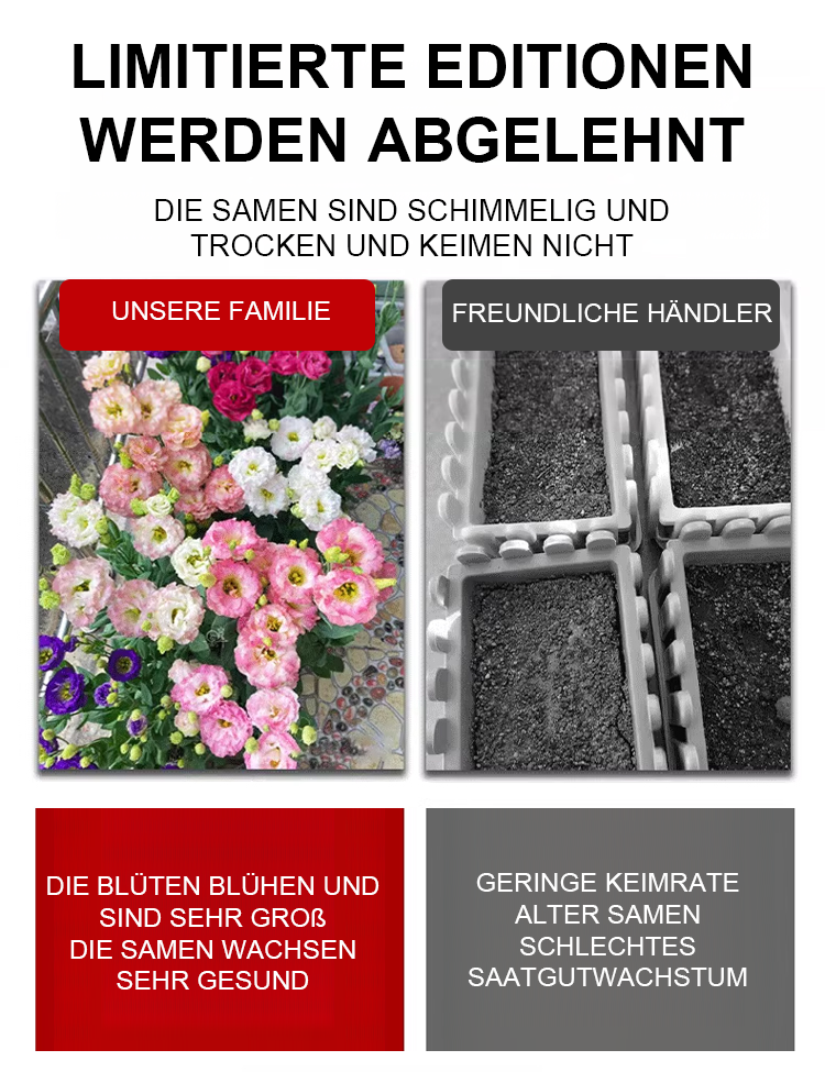 Bei jeder Bestellung beilegen wir Ihnen einen detaillierten Anbaoplan! Wenn die Blumen nicht Ihren Erwartungen entsprechen, garantieren wir Ihnen eine vollständige Rückerstattung!