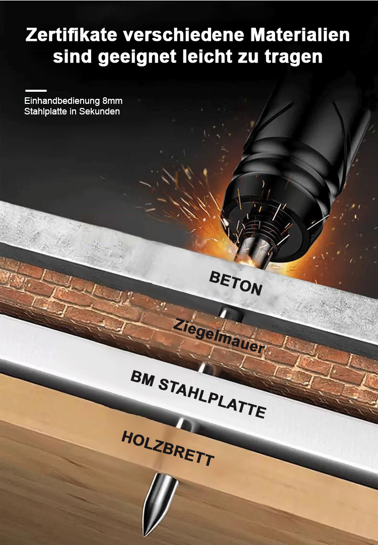 ✅ Einfach zu bedienen – Ein Druck, fertig!Kinder & Senioren freundlich 🧓👶Durchbohrt Stahl, Metall, Holz wie Butter 🧈Kompakt & Leise • 5 Jahre Garantie 🔒